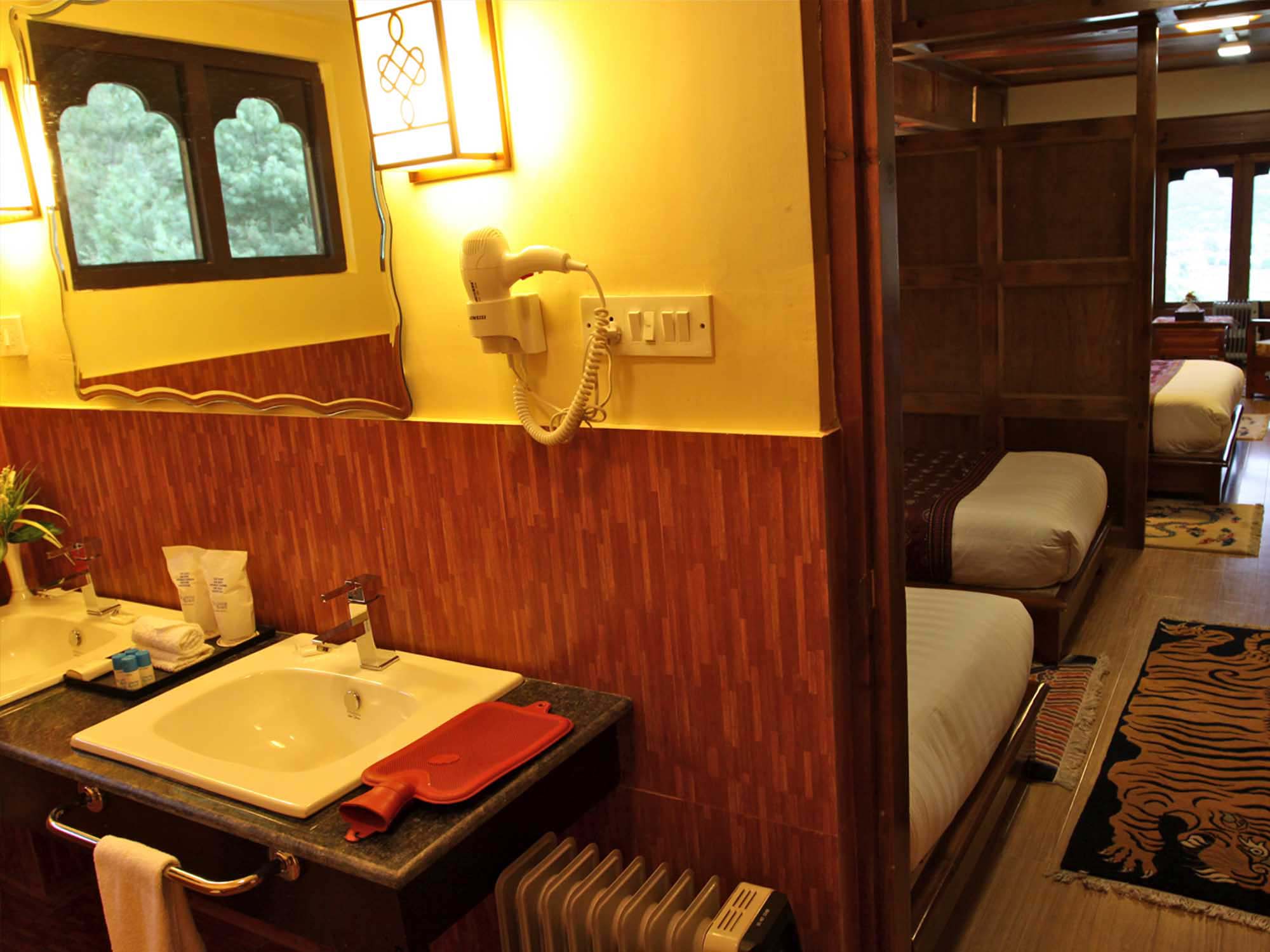 Spacious and functional, this room includes three beds and a valley-facing window, perfect for families or groups.