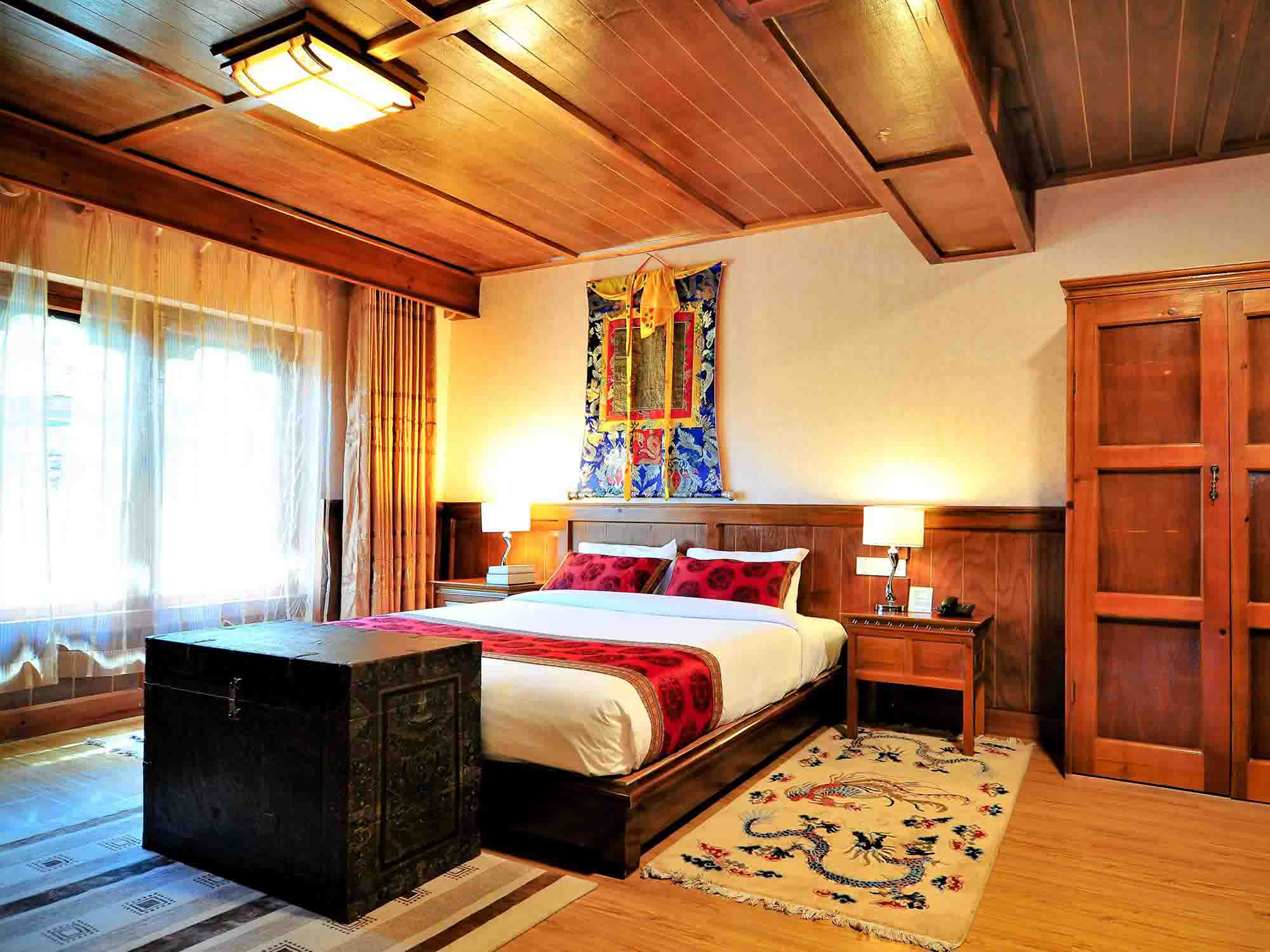 Experience the charm of Bhutanese design with beautiful views of the Bumthang Valley. These rooms are located